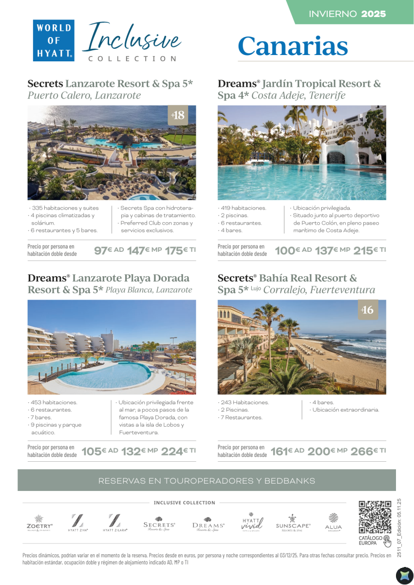 Tenerife, Lanzarote y Fuerteventura: salidas diciembre. Hoteles Dreams y Secrets (solo adultos).
